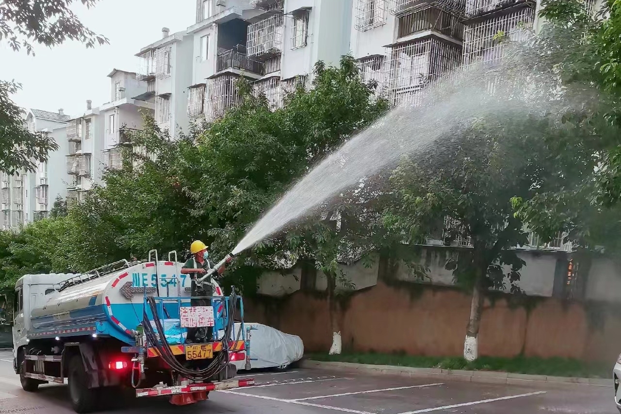 為防止夏季瀝青混凝土路面受高溫影響產(chǎn)生裂縫、塌陷等現(xiàn)象,市政建設(shè)公司環(huán)衛(wèi)車輛對(duì)沱二橋、葛洲壩、長二橋、千鳳路、二環(huán)路等5個(gè)段車行道進(jìn)行循環(huán)灑水降溫作業(yè),維護(hù)路面約87萬平方米,認(rèn)真做好路面養(yǎng)護(hù)工作,維護(hù)車輛行車安全和道路整潔。